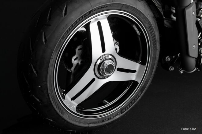 Im Herzen arbeitet der bekannte, aber überarbeitete 1.350-ccm-LC8-V2 von KTM. Mit 190 PS und 145 Nm Drehmoment katapultiert er die BRABUS 1400 R in neue Leistungsregionen. Der Underseat-Doppelrohr-Endschalldämpfer ist nicht nur ein optisches Highlight, sondern liefert auch den charakteristischen, tiefen BRABUS-Sound.