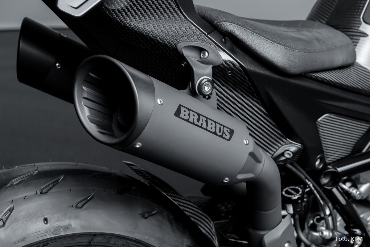 Im Herzen arbeitet der bekannte, aber überarbeitete 1.350-ccm-LC8-V2 von KTM. Mit 190 PS und 145 Nm Drehmoment katapultiert er die BRABUS 1400 R in neue Leistungsregionen. Der Underseat-Doppelrohr-Endschalldämpfer ist nicht nur ein optisches Highlight, sondern liefert auch den charakteristischen, tiefen BRABUS-Sound.