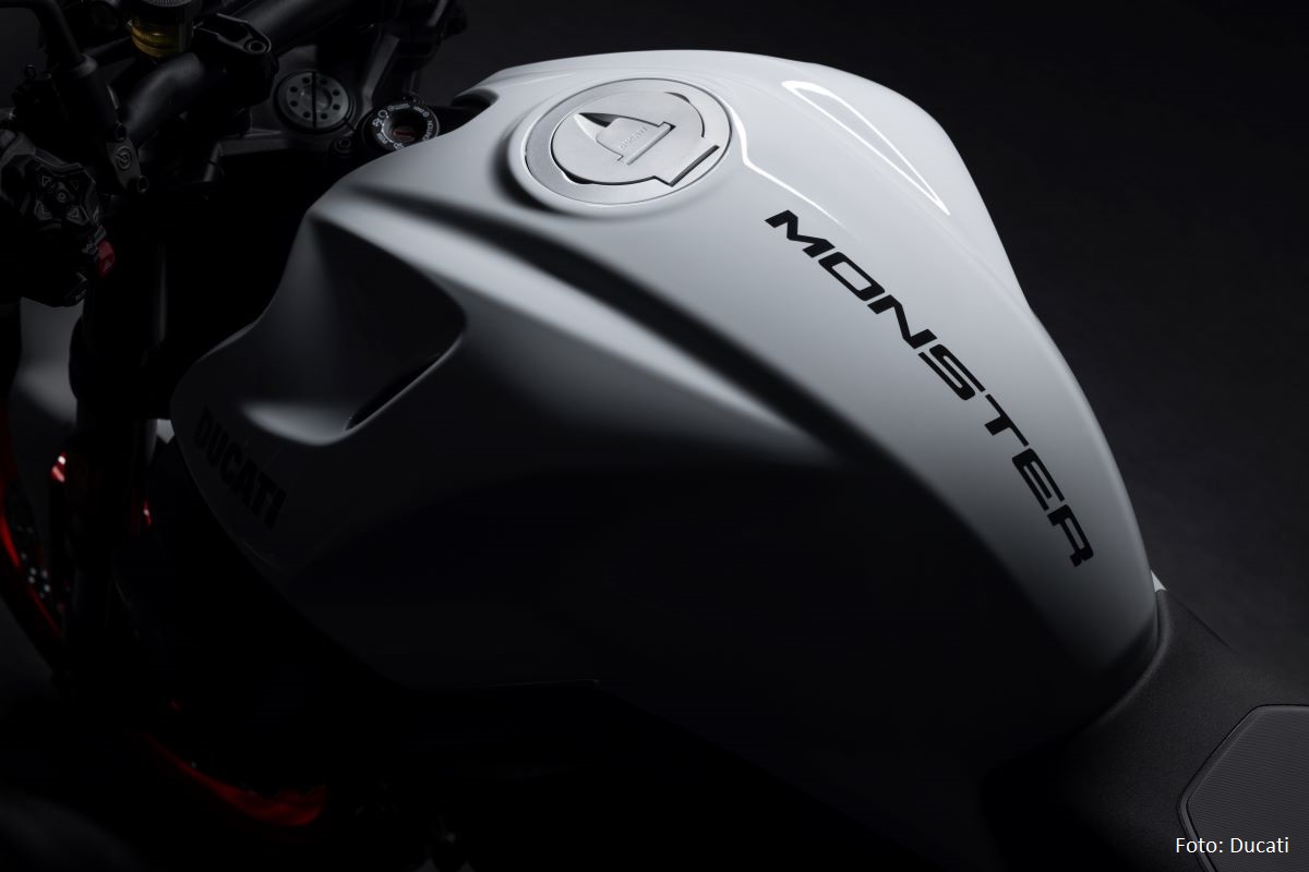 Die neue Monster 2026 und Monster+ (mit Soziusabdeckung und kleiner Verkleidung) rollen ab Februar 2026 in Europa an den Start, gefolgt von den USA, Japan und weiteren Märkten im Laufe des Jahres. Farben: Ducati Red und Iceberg White.