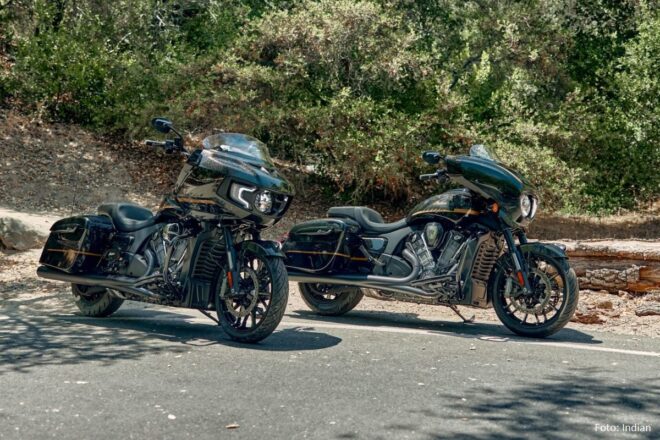 2026 steht bei Indian auch optisch für frischen Wind. Von „Black Crystal“ und „Super Graphite“ über „Storm Blue“ bis hin zu „Cascade Green Metallic“: die neuen Farboptionen verleihen Chieftain, Challenger, Roadmaster & Co. einen edlen, modernen Look. Auch die Tankgrafiken einiger Chief-Modelle wurden überarbeitet – kleine Details, große Wirkung.