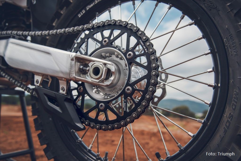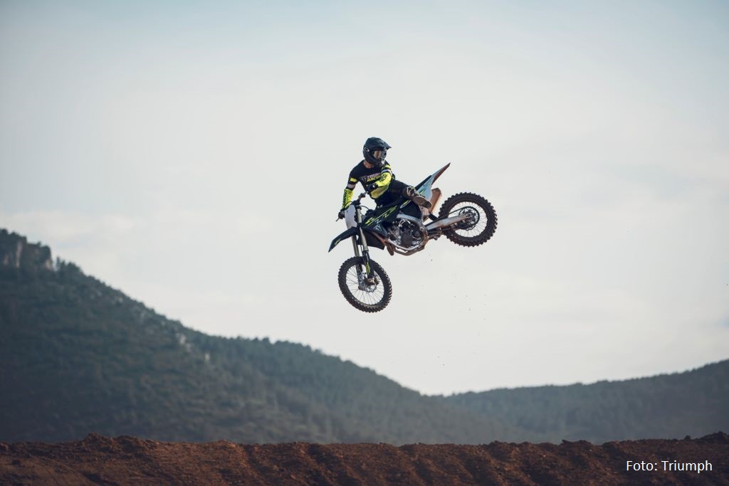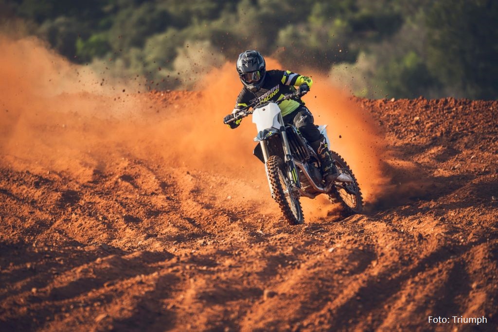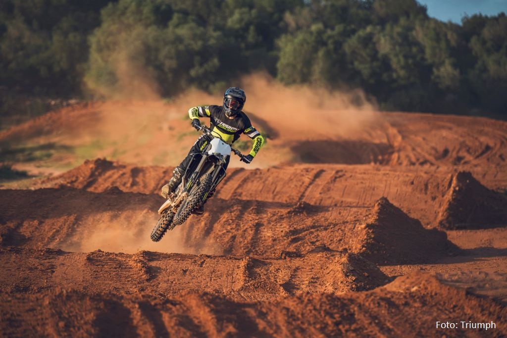 Bei den Bremsen setzt Triumph auf Brembo-Komponenten mit Galfer-Scheiben, dazu kommen D.I.D DirtStar-Felgen mit Pirelli MX32-Reifen. Zum Serienumfang zählen außerdem ProTaper-Lenker, ODI-Griffe und ein leichter D.I.D-Kettenantrieb.